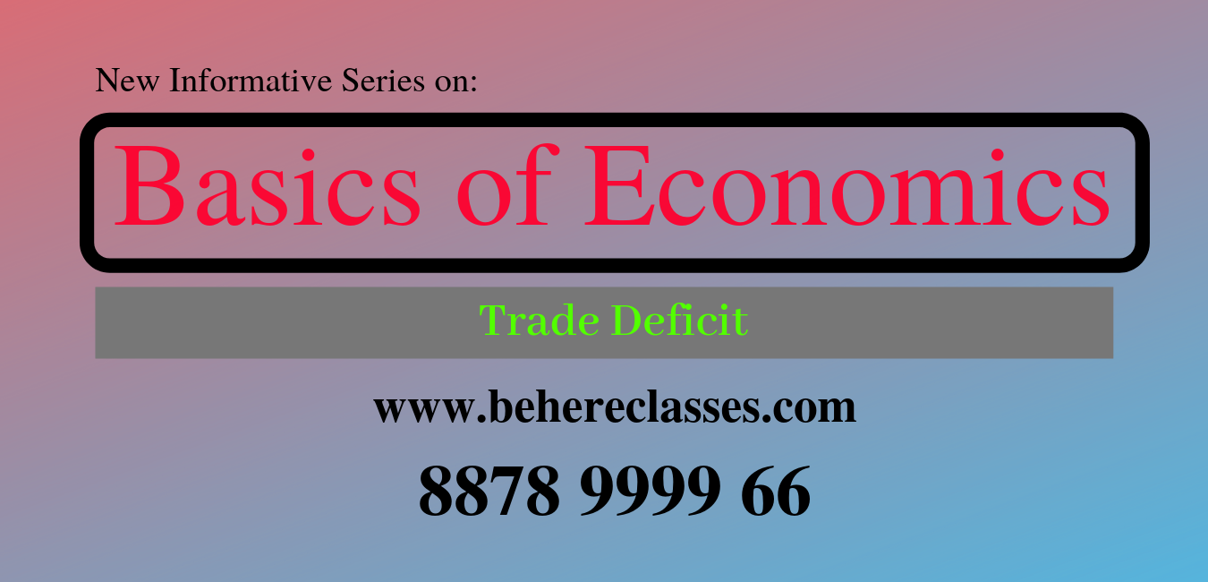 Best Commerce classes for 11th | 12th | CA/CS Foundation | BCom | BBA Behere Classes Basics of Economics Series Part 13: Trade Deficit A trade deficit is an economic measure used in international trade. Basically, trade deficit means country's imports exceed its exports. A trade deficit is serious of any domestic economy as it represents an outflow of domestic currency to foreign markets. Trade deficit is also referred to as a negative balance of trade (BOT) Trade Deficit = Total Value of Imports – Total Value of Exports Thank You. Regards, Behere Classes (www.behereclasses.com) Tags: Best 11th commerce classes in Pune, 11th commerce class in Pune, top commerce coaching in pune, Commerce classes in Pune city, 12th commerce classes in Pune, 12th commerce class in Pune, commerce classes near me, best commerce classes near me, 11th 12th commerce classes near me, BBA coaching classes in Pune, BBA classes near me, BCom classes in Pune, BCom classes near me, BBA tuitions near me, BCom tuitions near me, commerce tuitions near me, classes for 11th commerce, CA classes in Pune, Pune 11th commerce classes, tuitions for 11th commerce, CA foundation classes, CS foundation classes, best CA foundation classes, best CS foundation classes