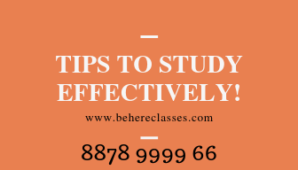 How to study effectively? 1. Most important thing is taking/making notes: (Notes taking means notes from lecture and notes making means preparing notes while self-studying) a. Start with good note taking/making habits. “Notes” always helps a lot. b. Always review your notes from previous lessons, before heading towards next. 2. Try not to do too much study at one time. 3. Plan specific time for studying. 4. Try to study at the same time each day. 5. Start studying when planned. 6. Review notes before beginning an assignment. 7. Eliminate distractions during study time. 8. Call your friend (who can help you with studies) when needed. 9. Attend all the lectures and tests conducted by Behere Classes. All the best for your studies For further guidance, excellent teaching and personalized attention you may contact Behere Classes, the Best Commerce Classes in Pune for 11th and 12th commerce, CA and CS Foundation, BCom and BBA A guaranteed passing result is ensured by correct study planning & personalized guidance. We are providing such guidance since 1980 to commerce students. We don’t limit our students to score just passing marks in the Professional CA / CS Examination, but we prepare them for achieving all India ranks. Even average students with us following Behere pattern of study are consistently scoring good Marks in 11th, 12th, CA / CS Foundation, BCom and BBA Exams. Join Today Behere Classes for CA / CS Foundation and begin your Professional journey. Further, we also provide excellent Commerce Coaching Classes for 11th Commerce, 12th Commerce, CA Foundation, CS Foundation, BCom, BBA in Pune. Check our Google reviews to confirm that Behere Classes are undoubtedly the best commerce classes in Pune: Click Here For more details contact Head office of Behere's Commerce Classes in Pune - Tilak Road Sadashiv Peth. Or Call 8878999966 best 11th commerce classes in pune, 11th commerce class in pune, commerce classes in pune city, 12th commerce classes in pune, 12th commerce class in pune, commerce classes near me, best commerce classes near me, CA foundation classes, CS foundation classes, best CA foundation classes, best CS foundation classes, commerce coaching classes in pune, ca classes in pune, 12th commerce classes near me, bba coaching classes in Pune, bba classes near me, BCom classes in pune, BCom classes near me, bba tutions near me, bcom tutions near me