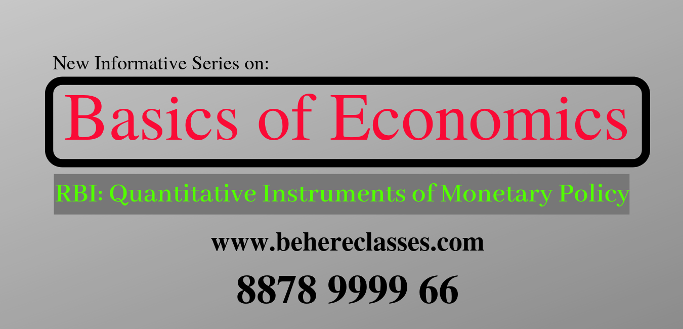 Top Commerce coaching classes Behere Classes Series on Basics of Economics Part 8: Quantitative Instruments of Monetary Policy Monetary policy refers to the credit-control measures adopted by the central bank of a country i.e. RBI in the case of India. The main objective of monetary policy is to maintain price stability while keeping in mind the objective of growth. Price stability is a necessary precondition for sustainable growth. Various instruments are used by RBI to achieve this objective. There are two types of instruments of monetary policy used by the RBI: 1. Quantitative, general or indirect (e.g. CRR, SLR, Open market operations, bank rate, the repo rate, reverse repo rate) 2. Qualitative, selective or direct (e.g. change in the margin money, direct action, moral suasion) In this article, we will be discussing the quantitative tools used by RBI. ➤ REPO AND REVERSE REPO RATE Repo is a transaction operation wherein securities are sold by the RBI and simultaneously repurchased at a fixed price. This fixed price of the repurchase is determined in context to an interest rate called the repo rate. The transaction is mostly relevant for banks; when they need funds from the RBI, the central bank repurchases the securities. The higher the repo rate, the more costly are the funds for banks and hence, higher will be the rate that banks pass on to customers. High rate signals that access to money is expensive for the banks; hence, lesser credit will flow into the system and that helps bring down liquidity in the economy. This will ultimately bring down inflation.(Similarly, RBI lowers the repo rate to inject the liquidity in the market, so as to accelerate the consumption) ➤ CASH RESERVE RATIO (CRR) CRR is the percentage of a bank’s total deposit that needs to be kept as cash with the RBI. The central bank can change the ratio to a limit. A high CRR means banks have to put more money with RBI resulting in lesser lending, which curbs liquidity; whereas, a low CRR does the opposite. The RBI has the power to reduce or raise CRR to tighten or ease liquidity as the situation demands. ➤ OPEN MARKET OPERATIONS This refers to buying and selling of government securities by RBI to regulate the short-term money supply. If RBI wants to induce liquidity into the system, it will buy the government securities and inject funds, and if it wants to curb the amount of money out there, it will sell these securities to banks, thereby reducing the amount of cash that banks have with them. RBI uses this tool actively even outside of its monetary policy review to manage liquidity on the regular basis. ➤ STATUTORY LIQUIDITY RATIO (SLR) SLR is the percentage of banks’ total deposits that they must invest in government-approved securities. The lesser the amount of SLR, the more funds banks have which they can lend outside. ➤ BANK RATE This is the re-discounting rate that the RBI extends to banks against securities such as bills of exchange, commercial papers or any other approved securities. Earlier it was an import policy instrument but in recent years, it has been the repo rather than the bank rate that has acted as a guideline for banks to set their interest rates. In addition to these measures, RBI also uses many qualitative tools to regulate credit flow. These tools will be discussed in the next article until then, stay connected! Thank You. Tags: Best 11th commerce classes in Pune, 11th commerce class in Pune, top commerce coaching in pune, Commerce classes in Pune city, 12th commerce classes in Pune, 12th commerce class in Pune, commerce classes near me, best commerce classes near me, 11th 12th commerce classes near me, BBA coaching classes in Pune, BBA classes near me, BCom classes in Pune, BCom classes near me, BBA tuitions near me, Pune 11th commerce classes, tuitions for 11th commerce, CA foundation classes, CS foundation classes, best CA foundation classes, best CS foundation classes, BCom tuitions near me, commerce tuitions near me, classes for 11th commerce, CA classes in Pune